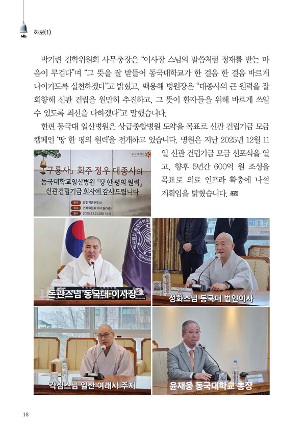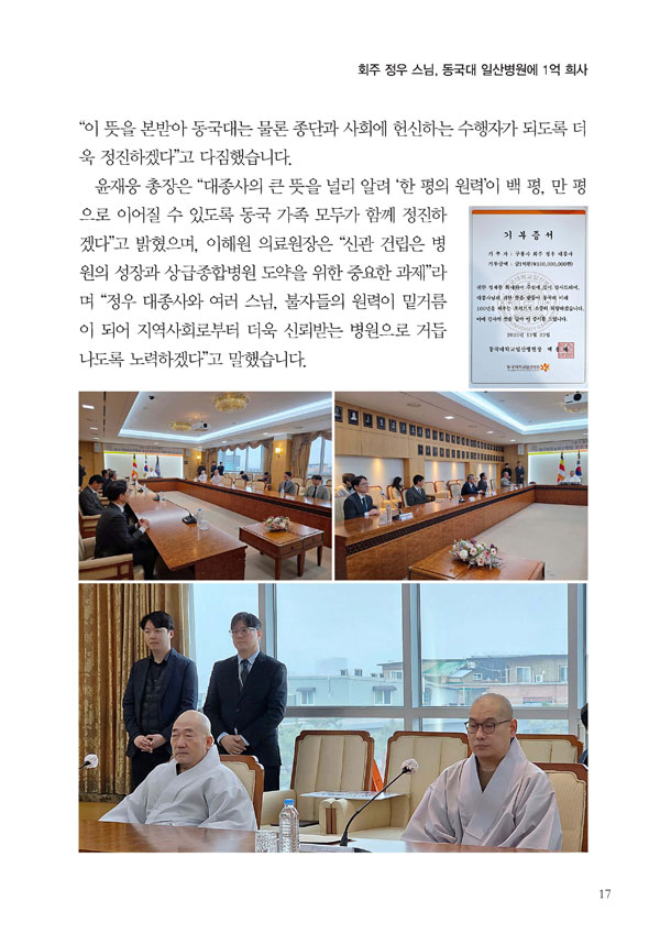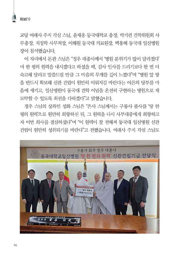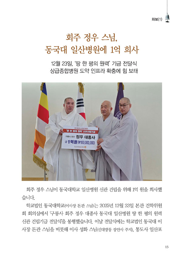 ȸÁÖ Á¤¿ì ½º´Ô, µ¿±¹´ë Àϻ꺴¿ø¿¡ 1¾ï Èñ»ç